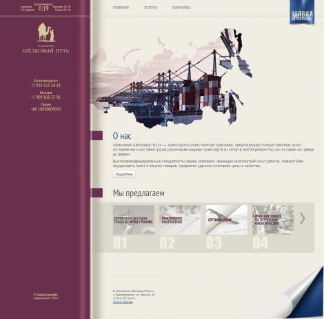 «Компания Шёлковый Путь» — транспортно-логистическая компания, предлагающая полный комплекс услуг по перевозке и доставке грузов различными видами транспорта из Китая в любой регион России по схеме «от двери до двери».